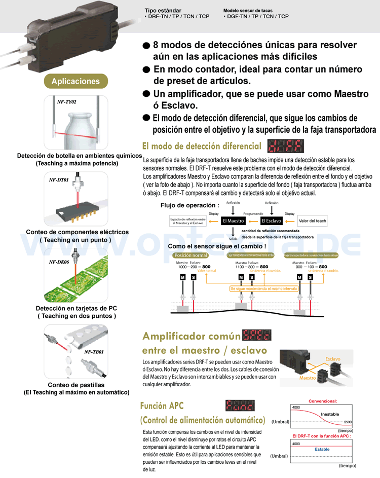 - 8 modos de detección: Incluye contador, diferencial y auto-teaching.